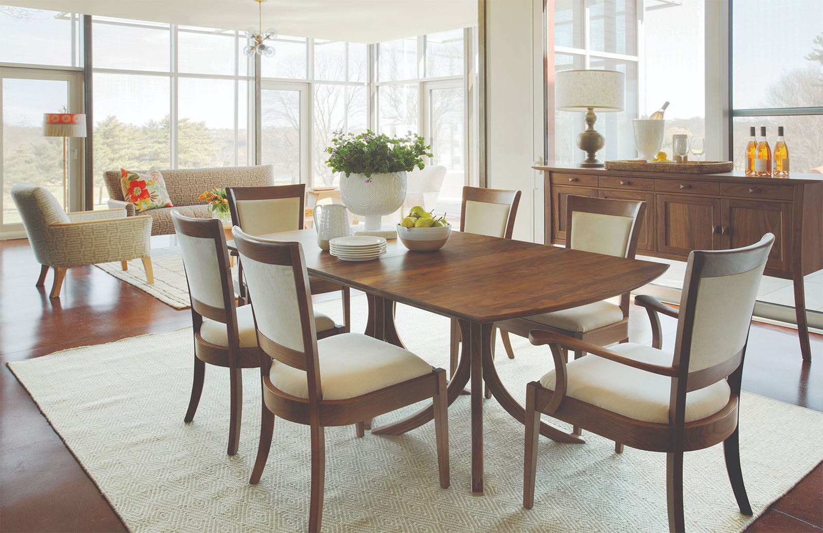 The Vernon Trestle Dining Table is handcrafted to order in Vermont in 20 standard sizes each in 6 sustainable solid wood species each chosen for beauty and strength. The elegant trestle base allows for maximum leg-room around the table.