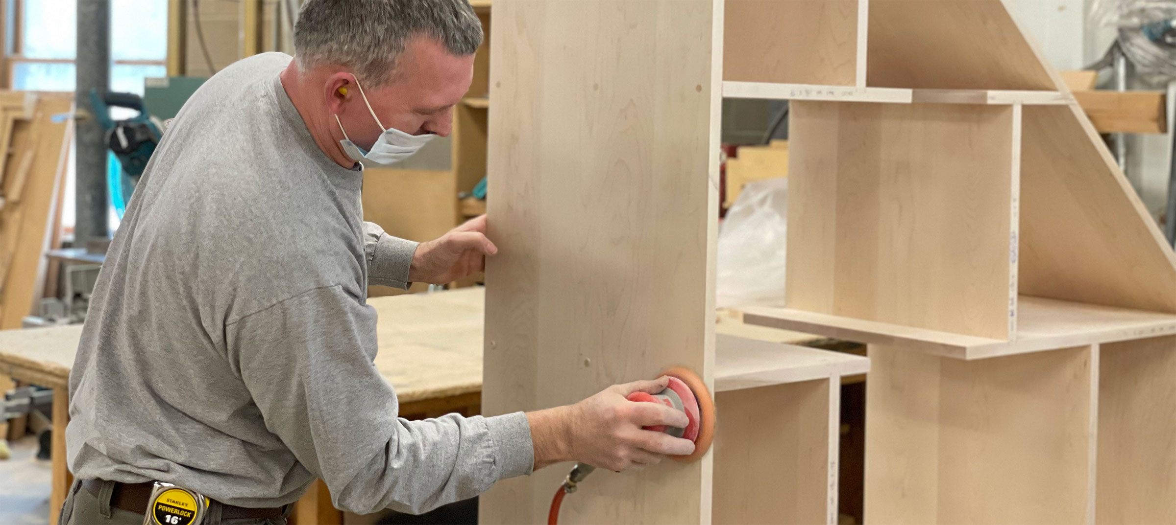 Our finishing team takes every assembled piece, sands, applies its signature Pompy finish, setup (including the installation of all doors, drawers, and hardware like knobs and pulls), and a final inspection. This team checks every corner, surface, and spec to ensure it meets our standards.