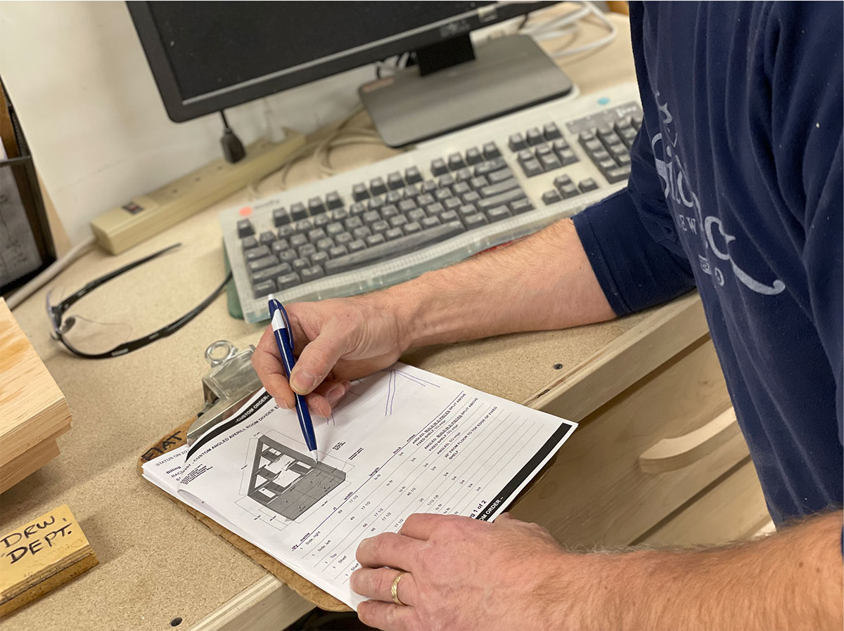 All Pompy home and office furniture is built from sustainably-sourced rough sawn lumber. Our Rough Mill then cuts, planes, and squares the lumber to exacting specifications before bundling and passing off to our Assembly team.