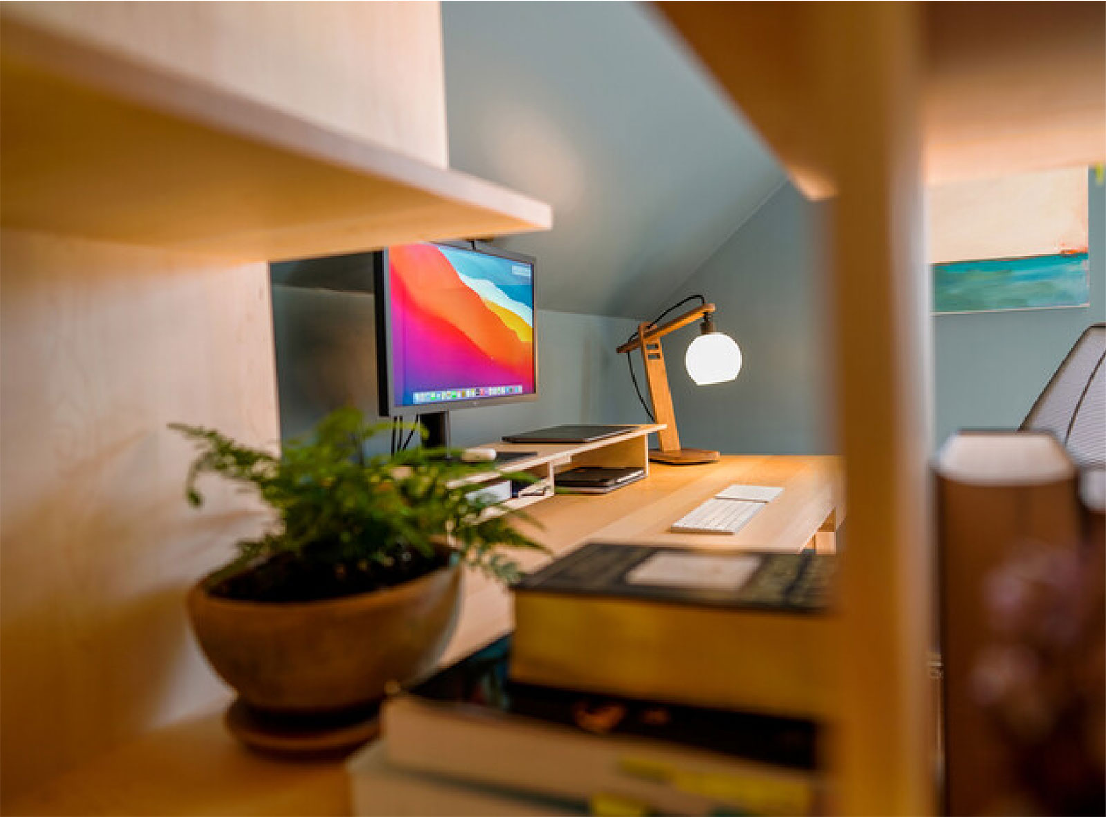 While some of the pieces we built for this home office, the Arlington Table Desk, The Mt. Abraham Desk Shelf, even the soon-to-be-launched Troy Task Lamp, were existing Pompy designs, a number of the pieces represent custom collaborations with our client.