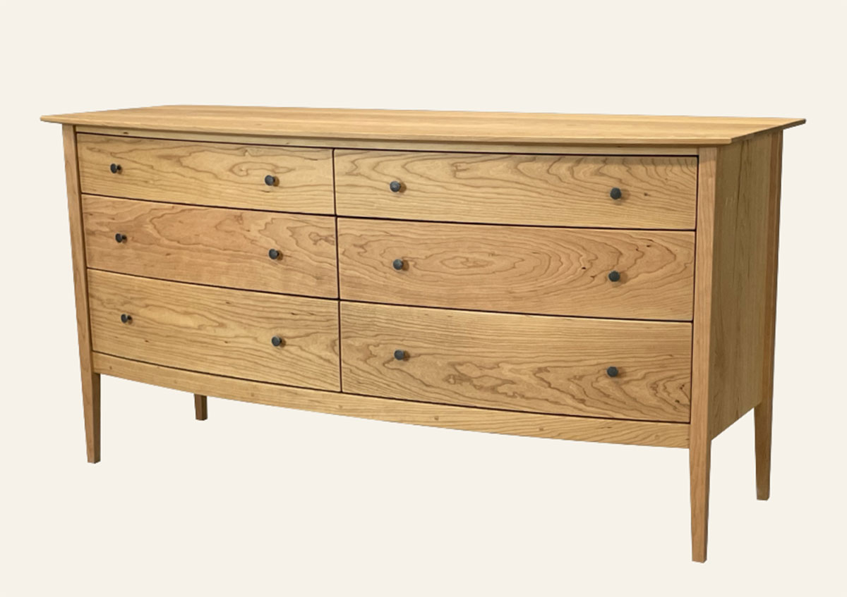 The Chelsea line of dressers features a gentle bowed front and elegant tapered legs projecting a supremely serene personality.