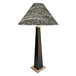Handcrafted lamp by local artisans in Vermont. The lampshade is printed on archival, heavyweight cotton paper with fine art photographs by Photographer/Designer, Christine Triebert.
