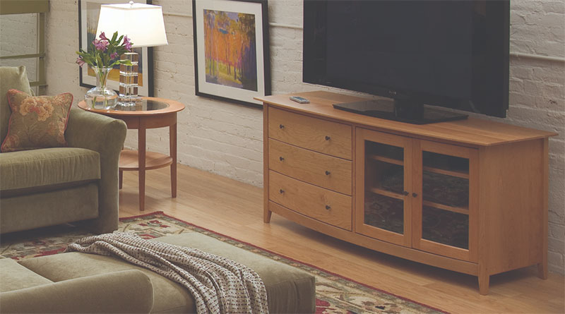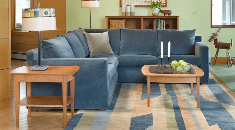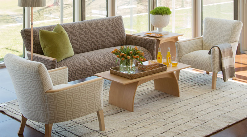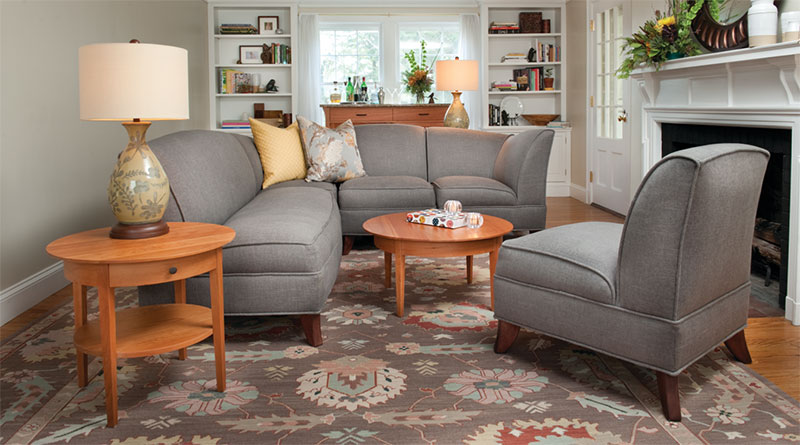 Pompy living room furniture creates a comfortable and stylish environment in your home for every day casual living or one for more elegant affairs. We offer two distinct approaches to our upholstery items. One approach includes a line of perfectly upholstered sofas, chairs and sectionals, the other line offers a unique collection of wood framed seating pieces with upholstered seat and back cushions. Add to that, we build an array of occasional tables, rocking chairs and bookcases in your choice of six North American hardwoods for a completely coordinated look and feel.