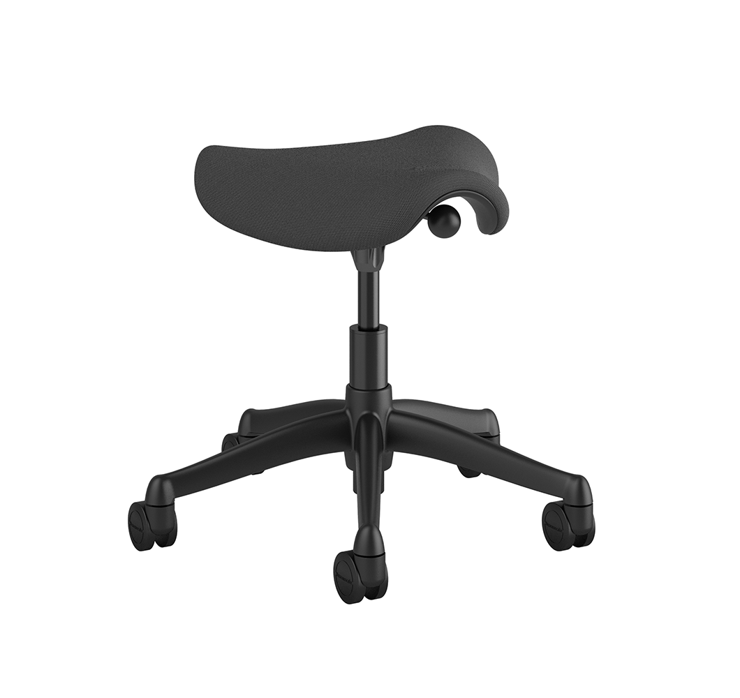 Freedom Pony Stool, height adjustable, with graphite 5-star base on standard hard casters. Freedom Pony Stool, height adjustable, with graphite 5-star base on standard hard casters. The standard 5” cylinder is appropriate for 95% of users, which provides seat height range of 17.3"-22.1". Pony saddle seat in Fourtis Black fabric.